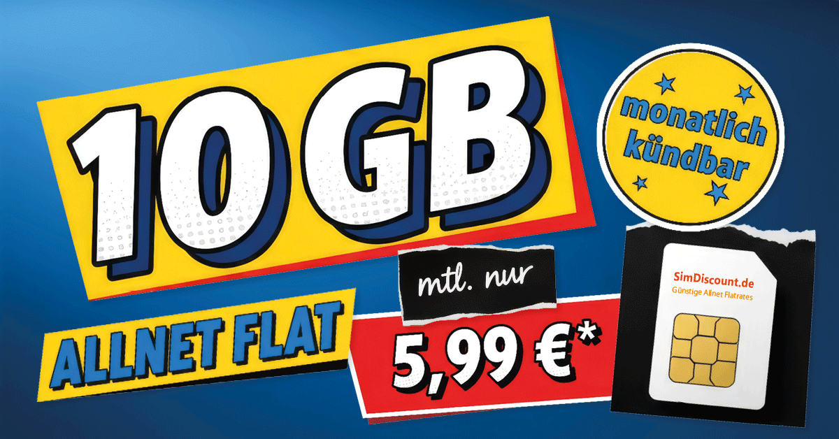 10 GB Allnet Flat (5G) jetzt für nur 5,99 EUR/Monat*